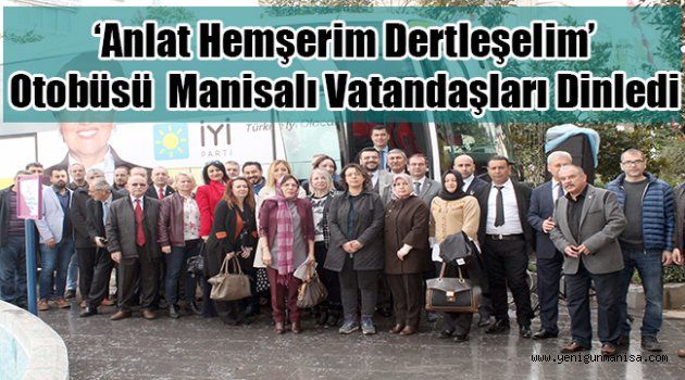İYİ Parti Genel Merkezi tarafından hazırlanan ‘Anlat Hemşerim Dertleşelim’ isimli proje kapsamında Türkiye’yi dolaşan otobüsün dördüncü durağı Manisa oldu. 15 Temmuz Demokrasi Şehitleri Meydanı’nda düzenlenen etkinliğe Genel Merkez Mahalli İdareler Başkan Yardımcısı Rıdvan Uz, Kurucular Kurulu Üyesi Neslihan Seven, Proje Sorumlusu Hüseyin Özgür, İYİ Parti İl Başkanı Tamer Akkal ve partililer katıldı. Başkan Akkal vatandaşlara şu şekilde seslendi. ‘ İYİ parti Türkiye’deki cesur insanların bir araya gelerek toplumun tüm kesimini kucaklayan bir siyasi harekettir. Bizler sizlerle dertleşebilmek ve sorunlarınızı dinleyip onlara çözüm üretebilmek için bugün burada sizlerle birlikteyiz.