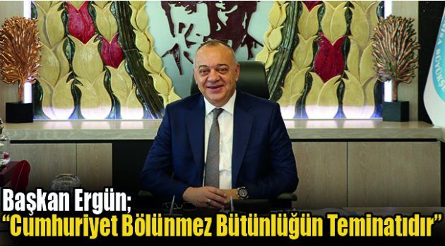 Bugün olduğu gibi çıkarlarını mukaddesatı olarak gören yabancı hayranları ile dış destek ve icazetli hamakat kadrolarının milletin kararlılığı karşısında duramadığını vurgulayan Başkan Ergün, “Cumhuriyet; bilgisizliğe, bağnazlığa, yobazlığa, yoksulluğa, çaresizliğe karşı verilen savaşın adıdır. Cumhuriyet; Anadolu insanının Büyük Atatürk önderliğinde verdiği emsalsiz mücadelenin, onurlu duruşunun, vatan sevgisinin adıdır. Cumhuriyet; bağımsız ve başı dik bir ulus olarak yaşama kararlılığımızın tüm dünyaya ilanıdır. Ulu Önder Atatürk’ün “Benim en büyük eserim” dediği ve yüce Türk Milletinin canı pahasına büyük fedakarlıkla kurduğu Cumhuriyet’i korumak bizim birinci görevimiz olmalıdır. Çünkü Cumhuriyet Türkiye’nin bölünmez bütünlüğünün teminatıdır. Başta Cumhuriyetin kurucusu Gazi Mustafa Kemal Atatürk olmak üzere, silah arkadaşlarını, Cumhuriyetin kuruluşuna giden süreçte seve seve canlarını veren şehitlerimizle, o mücadelenin haklı ve onurlu nişanını benliklerinde, vücutlarında taşıyan gazilerimizi minnet ve şükranla anıyor; tüm halkımızın Cumhuriyet Bayramı’nı en içten dileklerimle kutluyorum” ifadelerine yer verdi.