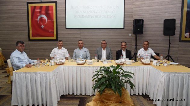 2011 yılından beri Manisa Müftüsü olarak görev yapan Sinan Cihan’ın 29 Haziran 2019 tarihinde Kocaeli Müftülüğü’ ne atanması sebebiyle yemek düzenlendi.Vali Ahmet Deniz 'de veda yemeğine katıldı.