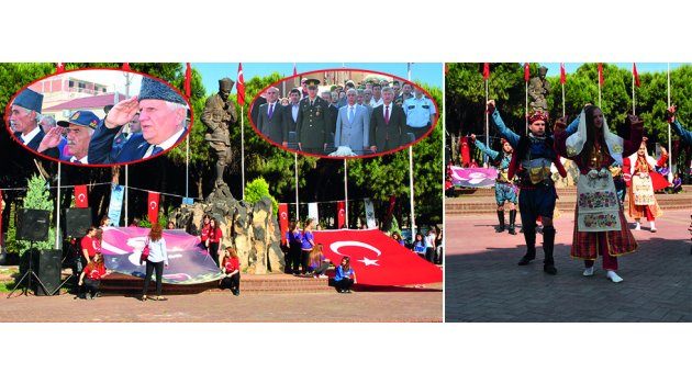 Saruhanlı Cumhuriyet Meydanı'nda ki tören halk oyunları gösterisi, çeşitli yarışmalarda dereceye giren öğrencilere ödüllerinin verilmesi ile sona erdi.