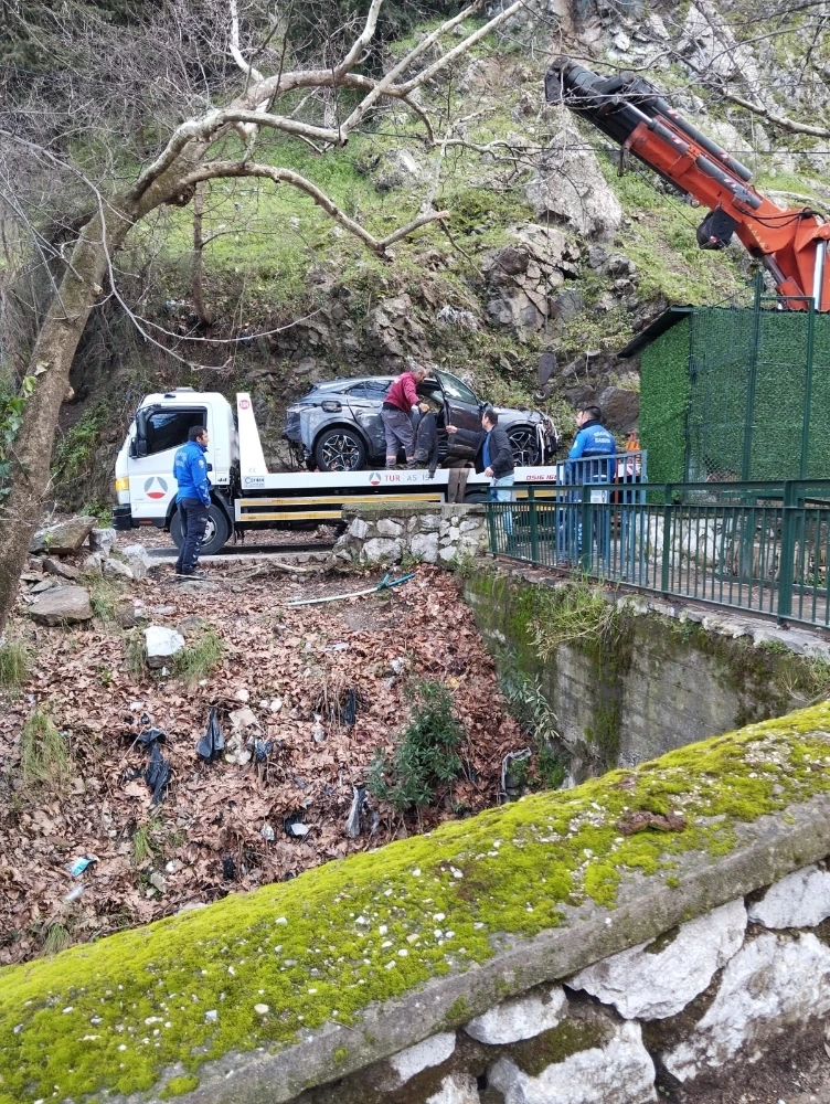 Olayın ardından bölgede inceleme yapan ekipler, yolu güvenlik şeridiyle kapatarak dere kenarında ikinci bir olumsuzluk yaşanmaması için tedbir aldı. Sabah saatlerinde bölgeye sevk edilen vinç yardımıyla araç dereden çıkarıldı. Sel sularının arasında sürüklenen otomobilin adeta hurdaya döndüğü görülürken, olayda can kaybı ya da yaralanma olmaması tek teselli oldu.