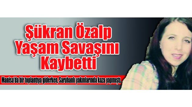 Manisa Devlet Hastanesinde yoğun bakıma alınan ve 3 günü yaşam savaşı veren 29 yaşındaki Şükran Özalp bugün hayatını kaybetti. Akhisar’ın Süleymanlı Mahallesinde ikamet eden ve ailesi ile yaşayan Şükran Özalp sevenlerini üzdü.