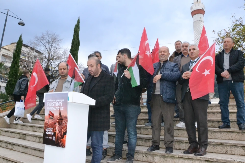 (MHA) Manisa – Türkiye Gençlik Vakfı (TÜGVA) Manisa İl Temsilciliği, 1 Ocak’ta İstanbul Galata Köprüsü’nde yapılacak Filistin eylemine destek amacıyla Hatuniye Camii önünde basın açıklaması düzenledi. Programda katılımcılar Türk ve Filistin bayrakları taşıyarak Gazze’de süren insani krize dikkat çekti.