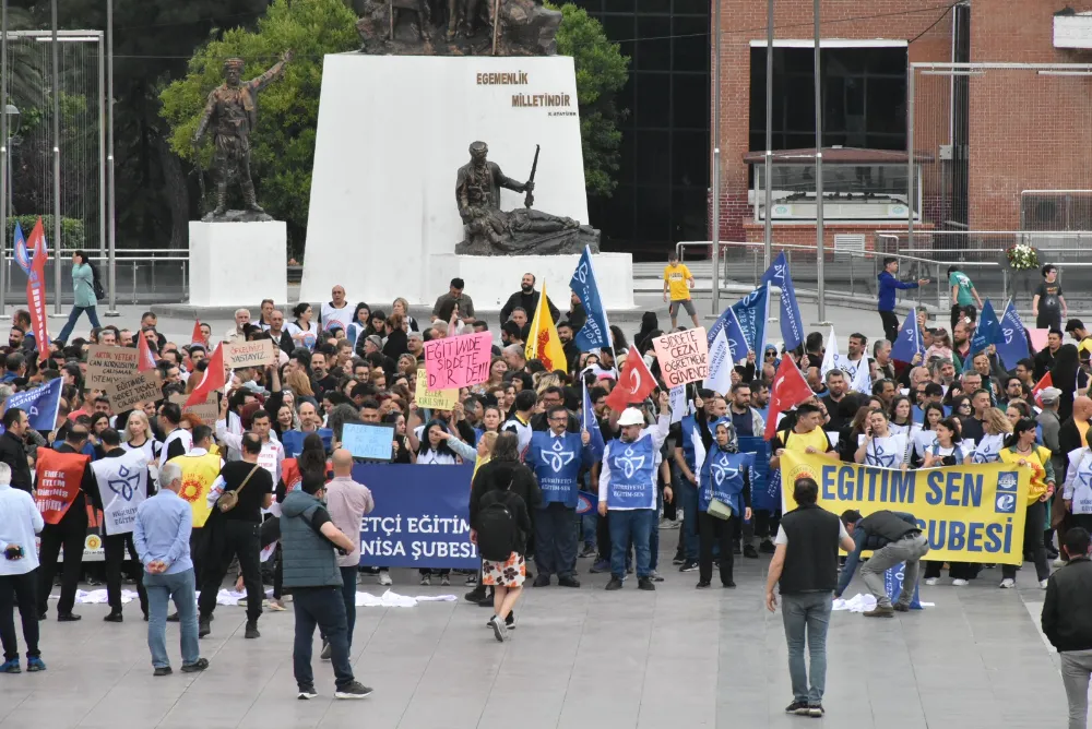 Türk Eğitim Sen Manisa Şubesi, İstanbul Eyüpsultan'da bir lisede öğrenci tarafından öldürülen okul müdürü İbrahim Oktugan için eylem gerçekleştirdi. 1 günlük iş bıraktılar. Türk Eğitim Sen üyeleri ellerinde Türk bayrakları ve Atatürk portesiyle 15 Temmuz Demokrasi Meydanı’ndan Cumhuriyet Meydanına kadar sloganlar atarak yürüdü. Bir öğretmen ise ‘Yeter artık ölmek istemiyoruz, şiddete son, silah değil kalem’ yazılı kanlı önlük giyerek eyleme destek verdi. Türk Eğitim Sen üyeleri yürüyüş boyunca ‘Eli öpülesi öğretmen şimdi dövülesi öğretmen oldu. Köle değil saygılı öğrenci istiyoruz, Mesleğime kan değdi, Bilgi ışığında şiddete yer yok. Öğretmenlerimiz ışığımızdır karartmayın. Öğretmenin can güvenliği sağlansın. Tebrikler el birliğiyle öğretmeni öldürttünüz. Öğretmene şiddet geleceğe ihanettir. Öğretmenler geleceğin mimarı onların ardında sessizlik değil direniş var” yazılı pankartlar taşıdı. Cumhuriyet Meydanı’nda hayatını kaybeden bütün öğretmenler için 1 dakikalık saygı duruşunda bulunuldu, İstiklal Marşı okundu.