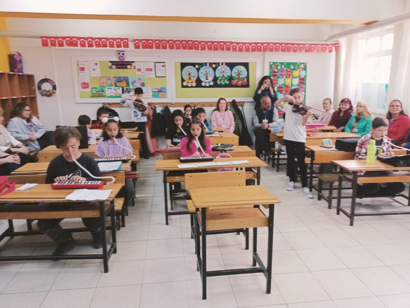 "Erasmus+ k210 Müzik eğitimi projesi 3 yıllık bir proje olup bu yıl 2. yılındayız. Bulgaristan,Polonya, Yunanistan,Türkiye, olmak üzere 4 ülke projeye paydaş oldu ve etkinliğe 95 öğrencimiz katıldı. Öğrenciler müzik teorisi hakkında genel bilgi verildikten sonra müzikte kullanılan notalar hakkında genel bilgi verildikten sonra uygulama eğitimleri yapıldı,öğrenilmiş olan nota değerleri ile egzersiz çalışmalar ve bunun devamında uygulamalı eğitimlere geçildi. Nota okumayı öğrenen öğrencilerimize kendi istekleri doğrultusunda bağlama, melodika, keman eğitimlerine başlandı. Öğrenilen müzik bilgiler doğrultusunda okulumuzun müzik müfredatı çerçevesinde müfredatta bulunan okul şarkılarının notaları deşifre edildikten sonra, ritmik olarak okunuşu öğretildi ve bunun devamında seçmiş oldukları enstrümanlarda çalmayı öğrendiler. Öğrenilmiş olan şarkılar okulumuzda mevcut bulunan akıllı tahtalar kullanılarak çeşitli müzik programları ile ülkemize Erasmus projesi kapsamında gelmiş olan ülkelere sunumlar yapılmıştır. apılan sunumlarda önce bireysel sonra toplu olarak sunumlar yapıldı. Bunun haricinde Bulgaristan,Yunanistan, polonya dan ülkemize gelmiş olan katılımcı öğretmenlerimizle kaynaşma etkinliği yapıldıktan sonra kendilerine folklorik ,müzikal ve tiyatral alanda gösteri sunumları yapıldı. Yapılmış olan sanatsal çalışmalar öğrencilerimizin sosyal yaşantılarına ve eğitimlerine olumlu yönde etki sağlamıştır ve bunun devamınının süregelmesi için çalışmalar devam edecektir. Bunu yanısıra sanatsal ve kültürel gezi düzenlenerek bulunduğumuz ölgenin tarihsel dokusu,geçmişi hakkında bilgiler sunuldu bunun neticesinde gelmiş olan öğretmen meslektaşlarımız memnuniyetle ülkelerine döndüler.