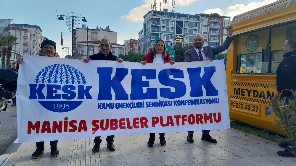 (MHA) Manisa’da kamu emekçileri, emek ve meslek örgütlerinin çağrısıyla artan hayat pahalılığına ve yetersiz ücret artışlarına karşı iş bırakma eylemi gerçekleştirdi. Eğitim Sen Manisa Şube Başkanı Mehmet Ramazan’ın yanı sıra KESK Manisa Şube Platformu, DİSK, TÜM Emekliler Sendikası Manisa Şubesi, SES Manisa Şubesi, BES Manisa Şubesi ve CHP’li ilçe başkanlarından Yalçın Arcak’ın da destek verdiği eylemde, “İnsanca bir yaşam için bugün hizmet üretmiyoruz” mesajı verildi.